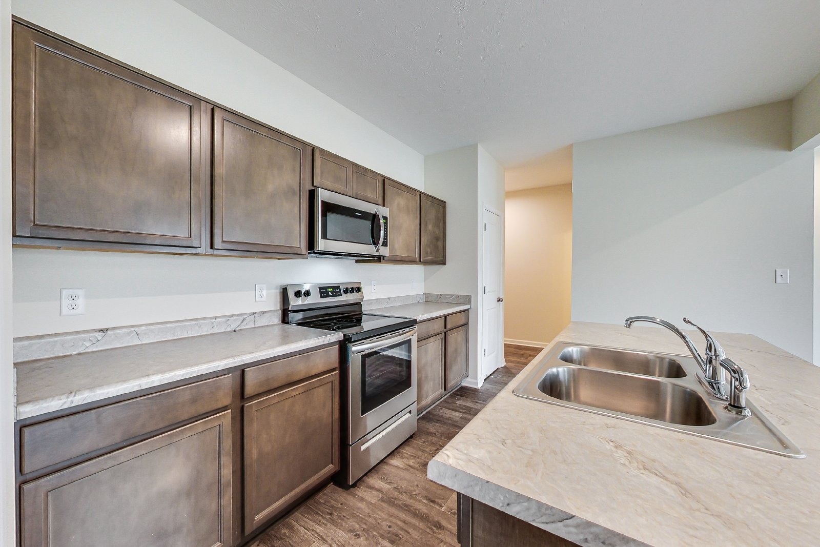 Welcome to 10828 Penwell Way — a beautiful two-story home in the Courtyards at Bellewood community, located at the southwest corner of German Church Road and 38th Street in Indianapolis. This inviting 4-bedroom, 2.5-bath home offers the perfect blend of modern comfort and everyday practicality. Step inside to find an open-concept main level with durable vinyl plank flooring throughout, creating a seamless flow between the living, dining, and kitchen areas. The kitchen comes fully equipped with all major stainless-steel appliances and offers plenty of counter space for cooking and entertaining. Upstairs, you’ll find all four bedrooms, including a spacious primary suite featuring a walk-in closet and a private ensuite bath. Each additional bedroom provides comfortable space for family, guests, or a home office setup. The home also features convenient in-unit laundry hook-ups and an attached two-car garage for easy parking and additional storage. Outside, enjoy a large backyard — ideal for relaxing evenings, gatherings, or simply soaking up some sunshine. Located just minutes from shopping, dining, and local conveniences, 10828 Penwell Way offers a peaceful neighborhood feel with easy access to everything you need. Don’t miss your chance to make this your next home.